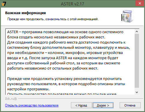 Далее следует ознакомиться с описанием программы и принять условия лицензионного соглашения пользователя АСТЕР: