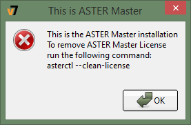 Every time the activation is performed a backup copy is created and sent to the server. To identify your computer, each operating ASTER copy gets a unique identifier. In the first run of ASTER the following information message is displayed: