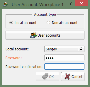 You may use not only your local account for automatic login, but the domain account if your computer is connected to the domain. You have to choose a corresponding option at the switch «Account type». For the local account choose an account at the drop down list «Local account» and if it’s necessary you may also set a password and confirm it. Selection of the option «Show login dialog» cancels the automatic login from this workplace. The button «User accounts» will open the system window «User accounts», where you can see, edit and add accounts if you have enough rights for it:
