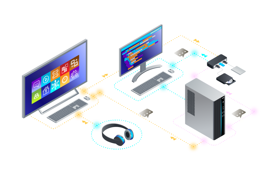 АСТЕР позволяет на базе одного системного блока создать до 6 рабочих мест. Вам потребуется только подключить к системному блоку требуемое количество :